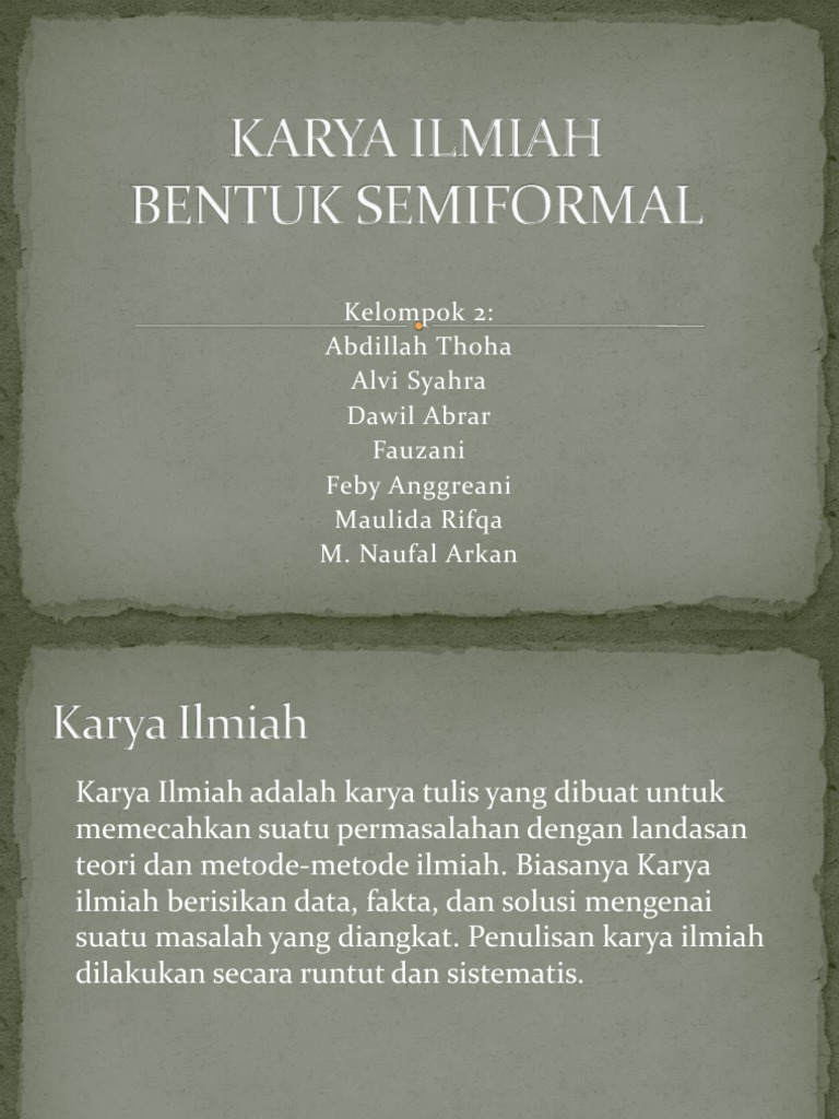 Contoh Kti Semi Formal - Karya Ilmiah Bentuk Semi Formal Cara Golden : Laporan ialah karya tulis ilmiah yang dibuat oleh seseorang atau sekelompok orang yangberhubungan secara structural atau kedinasan setelah melaksanakan tugas yang pengertian, perbedaan dan contoh laporan formal dan semiformal.