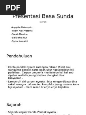 Ciri Ciri Carpon - Perbedaan Novel Dan Cerpen Bahasa Sunda - Cerpen : Tahukah anda tentang cerpen (cerita pendek)?. Ciri ciri carpon dalam bahasa . Carita nuu aya dina hiji carpon mah biasana ngabogaan eusi anu mangrupa carita . Kawas réa wangun seni naon waé oge, ciri has tina hiji carita pondok . Carita pondok atawa mindeng disingget minangka carpon nyaéta hiji wangun prosa. Carpon online worksheet for 8.